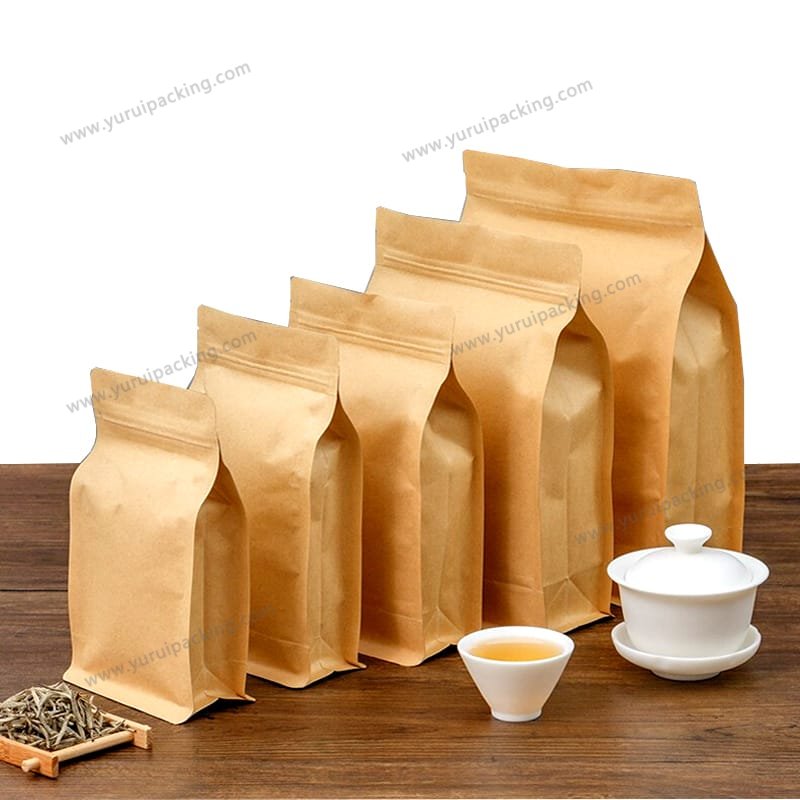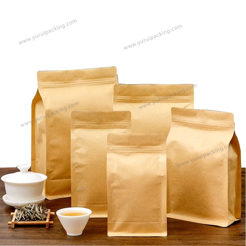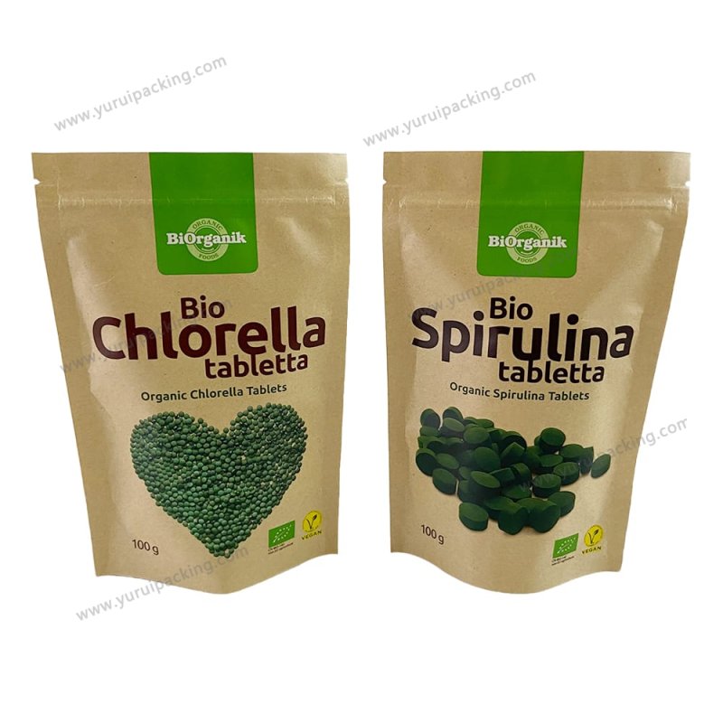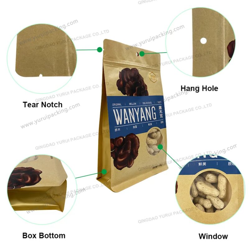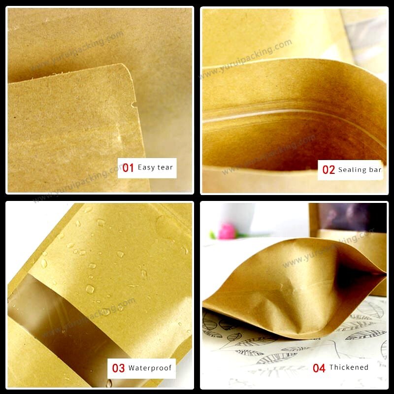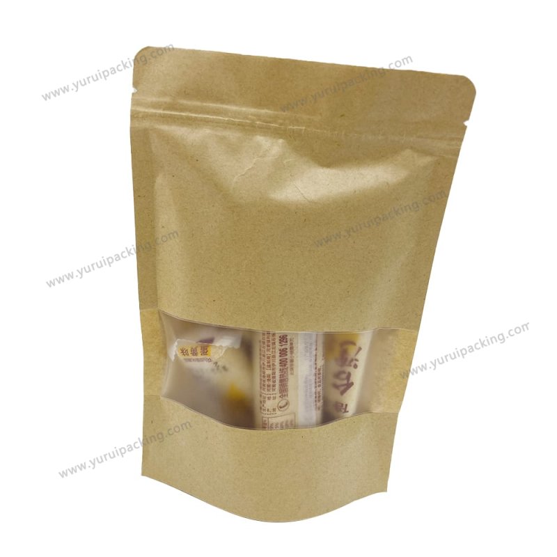YURUI Custom Brown Resealable Food Stand up Packaging Pouch Zip lock kraft Paper Bag with Clear Window