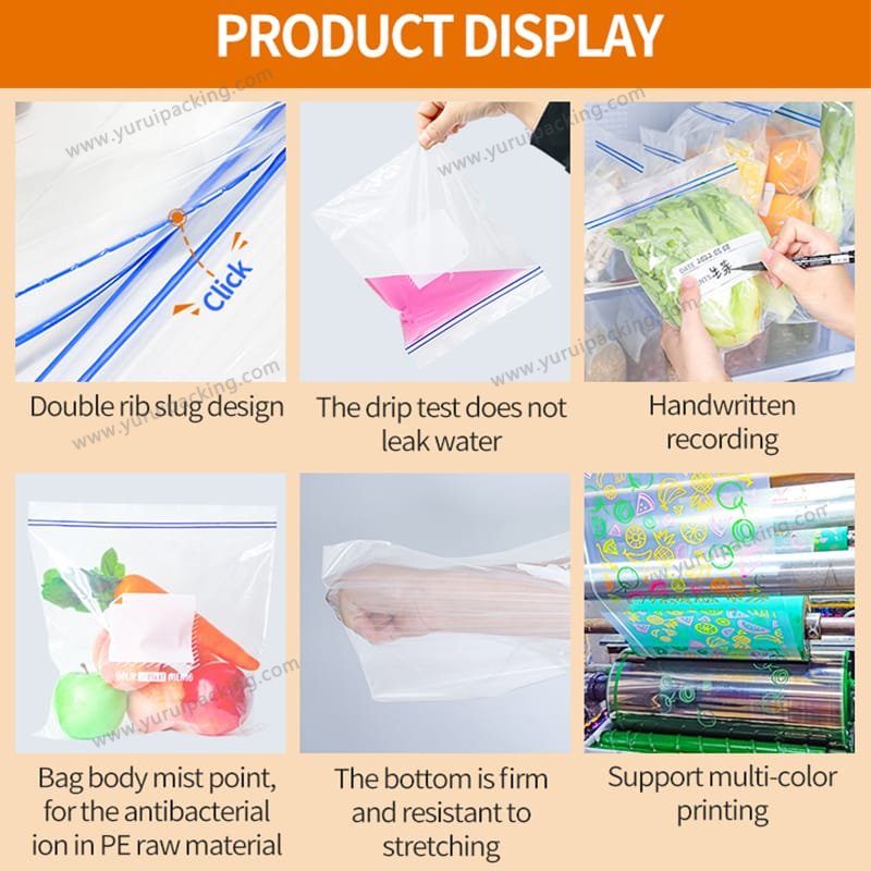 YURUI Custom Antibacterial Food Freezer Storage Preservation Packaging Ziplock Bag
