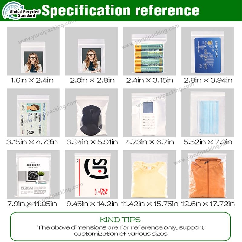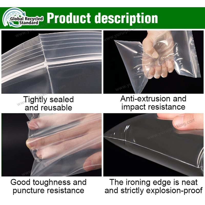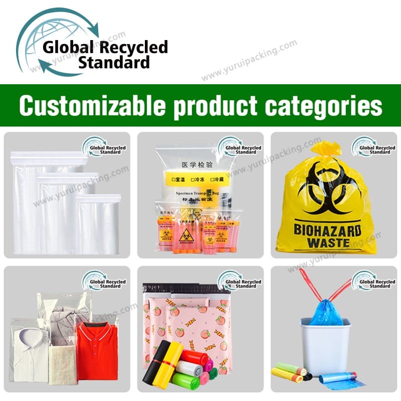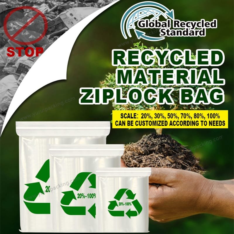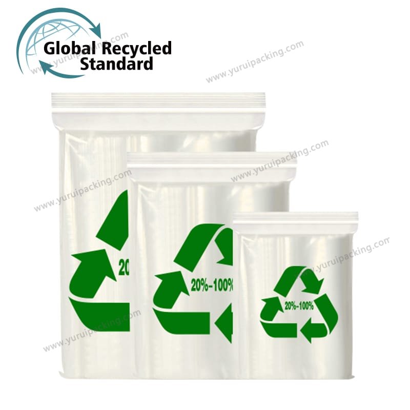 YURUI Custom GRS 100% Recycled Seal Plastic Zipper Lock Bag